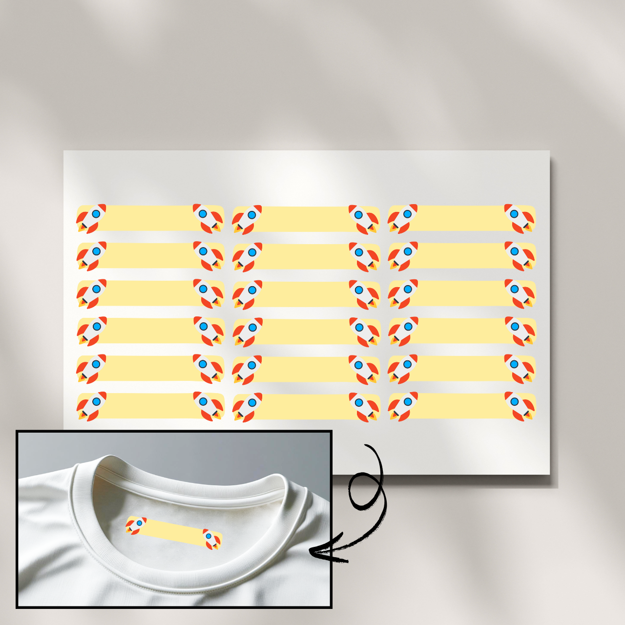 Clothing Label - Rocket - DTF Transfer Sheet of 18
