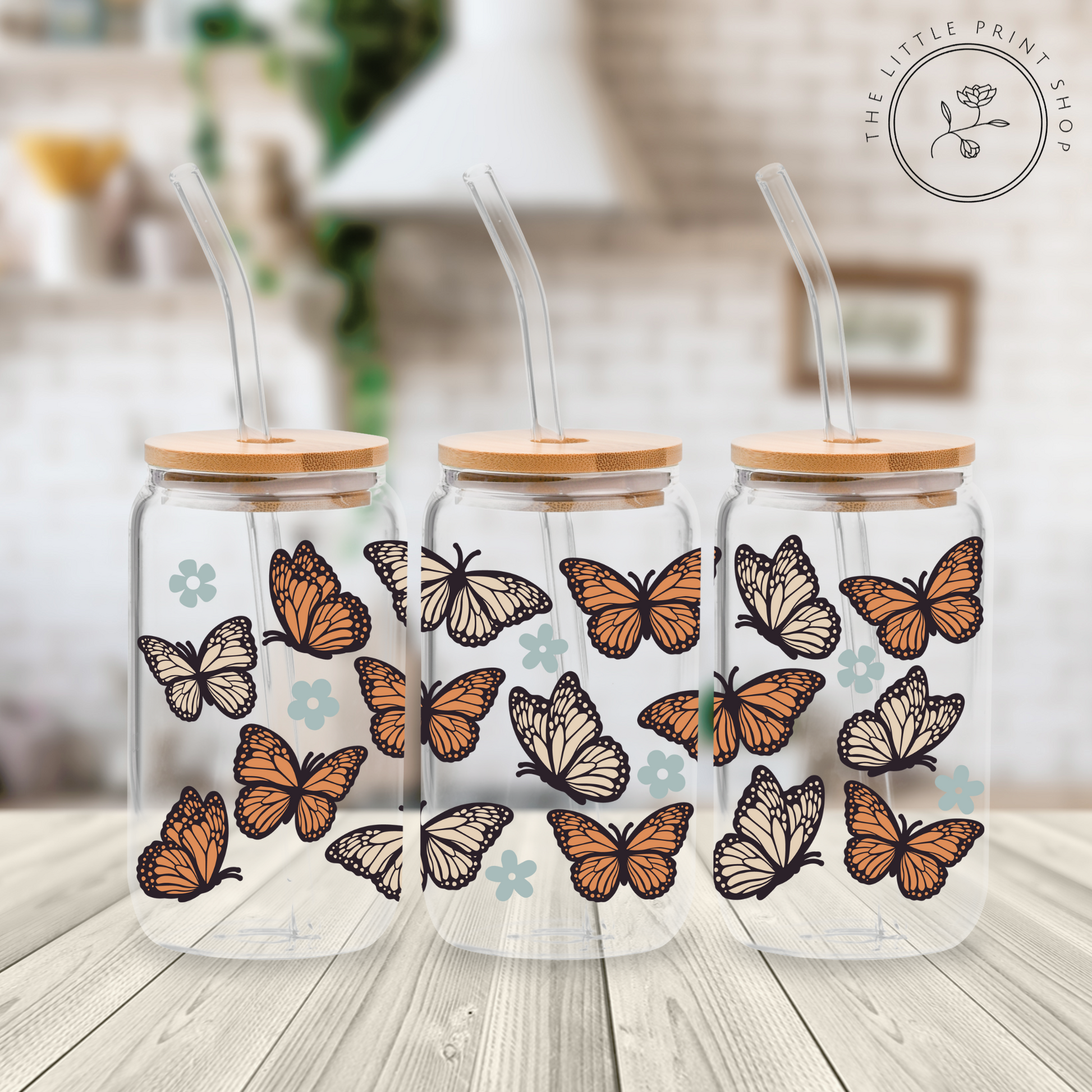 Butterflies - 16oz Libbey Glass Printed UV DTF Wrap
