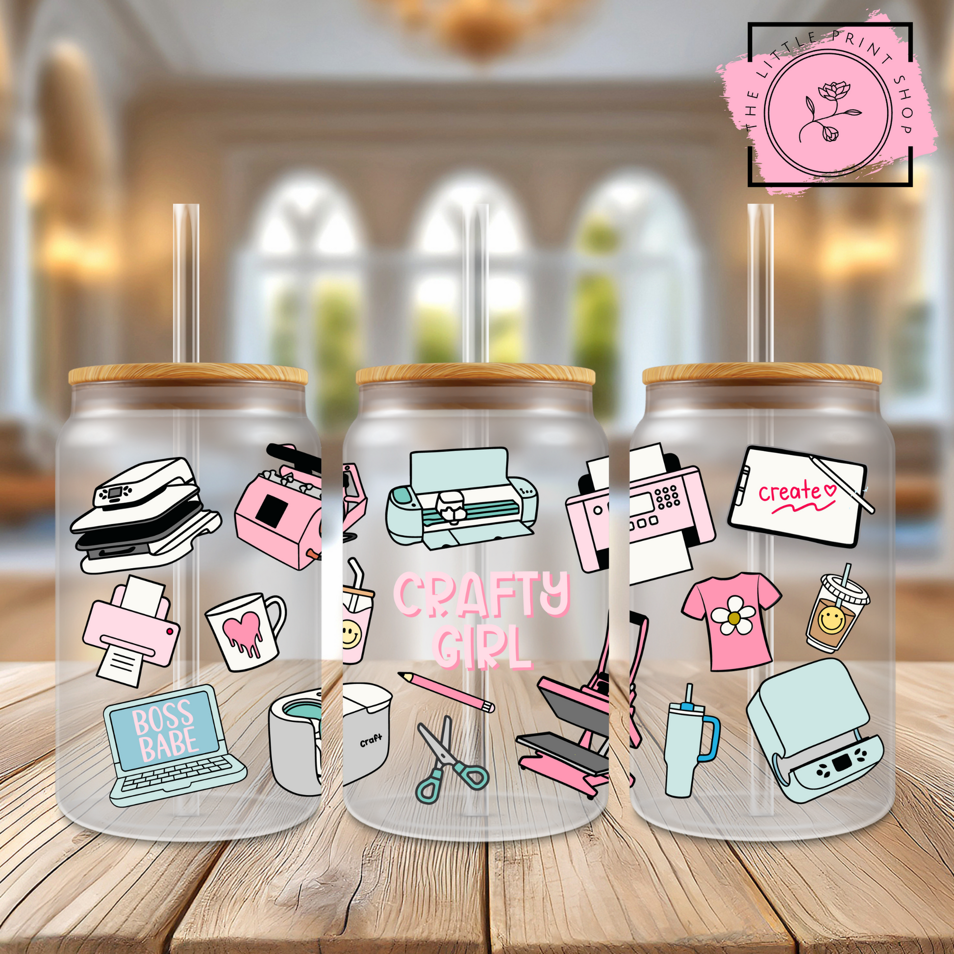 Crafty Girl - 16oz Libbey Glass Printed UV DTF Wrap