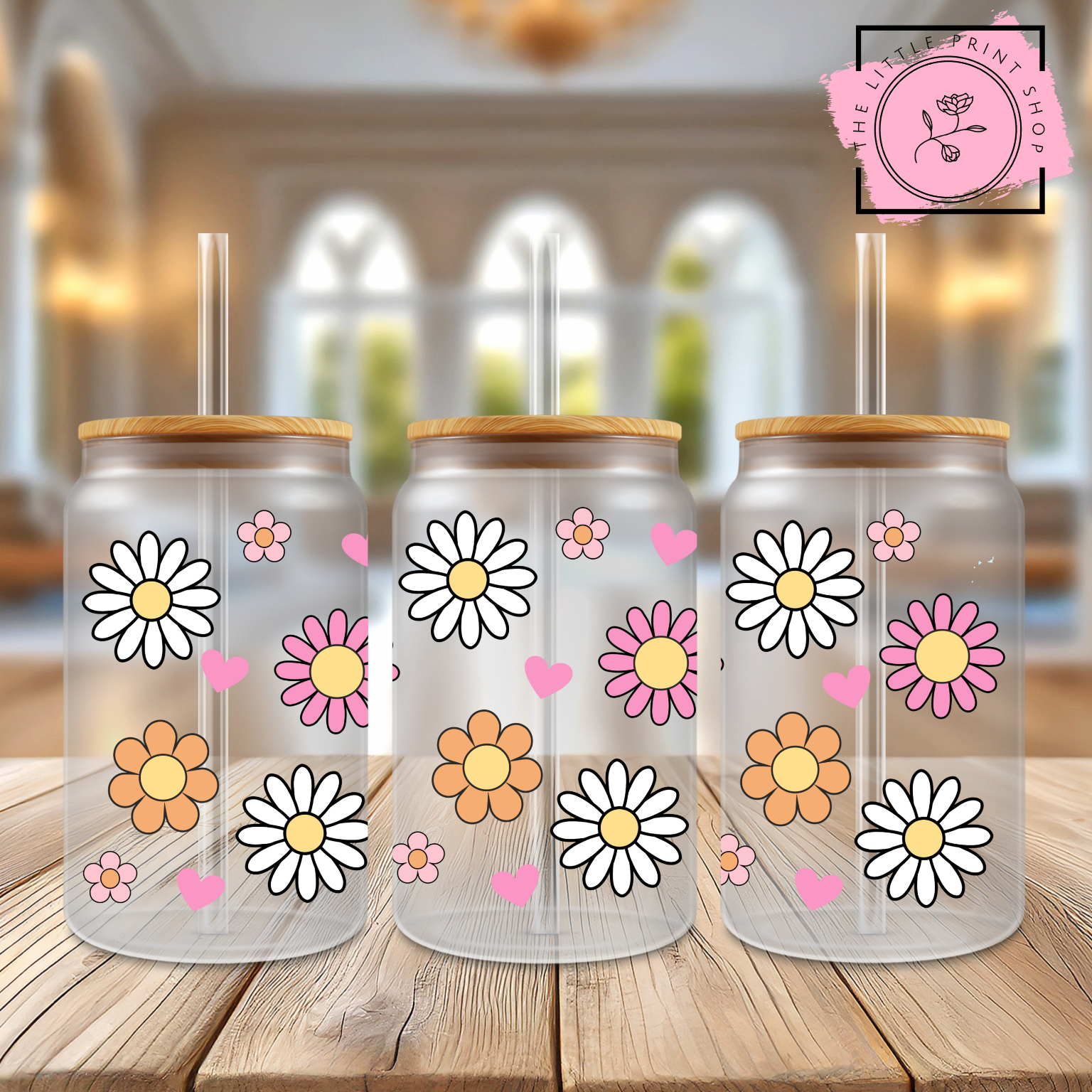 Daisies - 16oz Libbey Glass Printed UV DTF Wrap