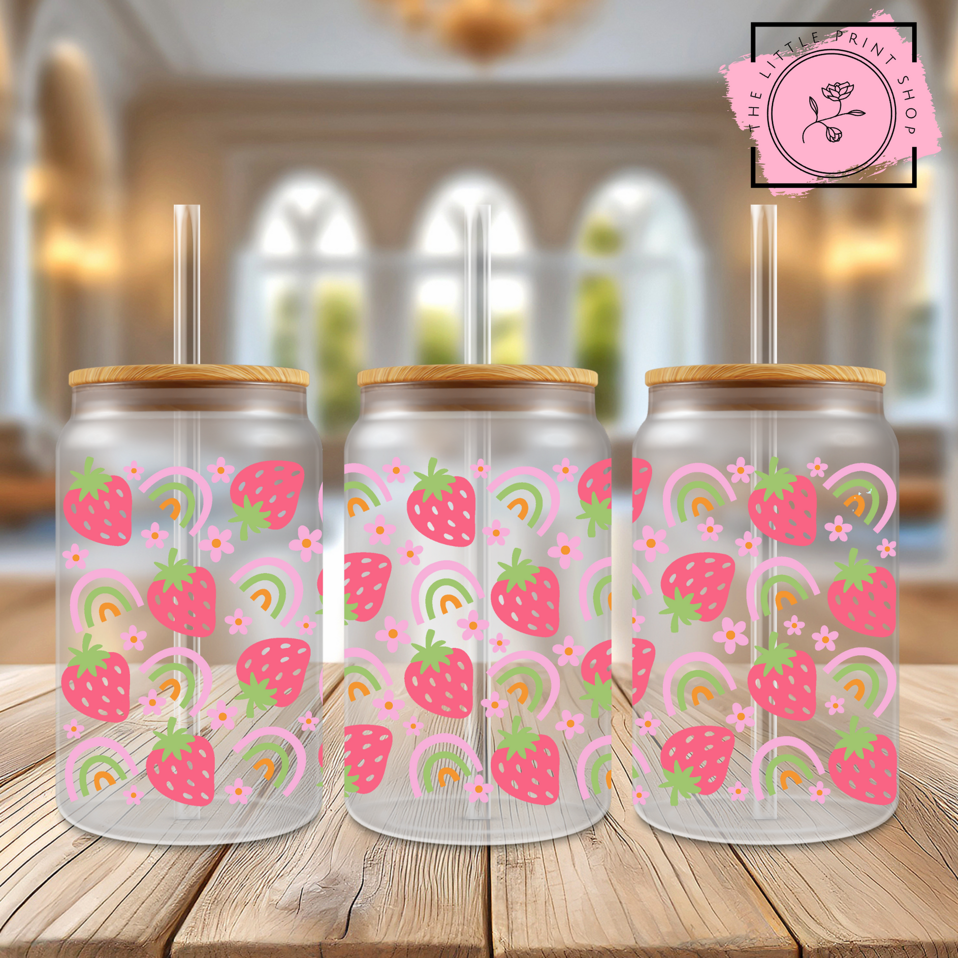 Summer Strawberries - 16oz Libbey Glass Printed UV DTF Wrap
